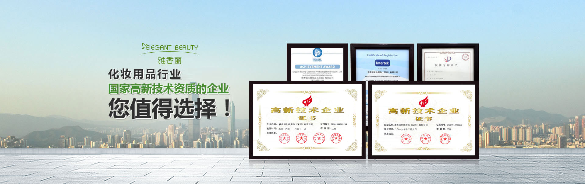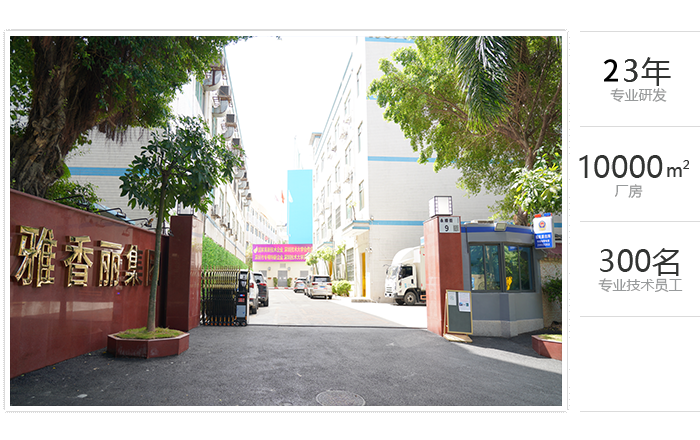 占地面積一萬余平方米,專業(yè)技術(shù)員工300余人,雅香麗憑借著在行業(yè)內(nèi)的專業(yè)化、精細(xì)化、特色化、新穎化、可持續(xù)化,榮獲國家"高新技術(shù)企業(yè)"、"深圳市專精特新中小企業(yè)"等重量級(jí)認(rèn)證。